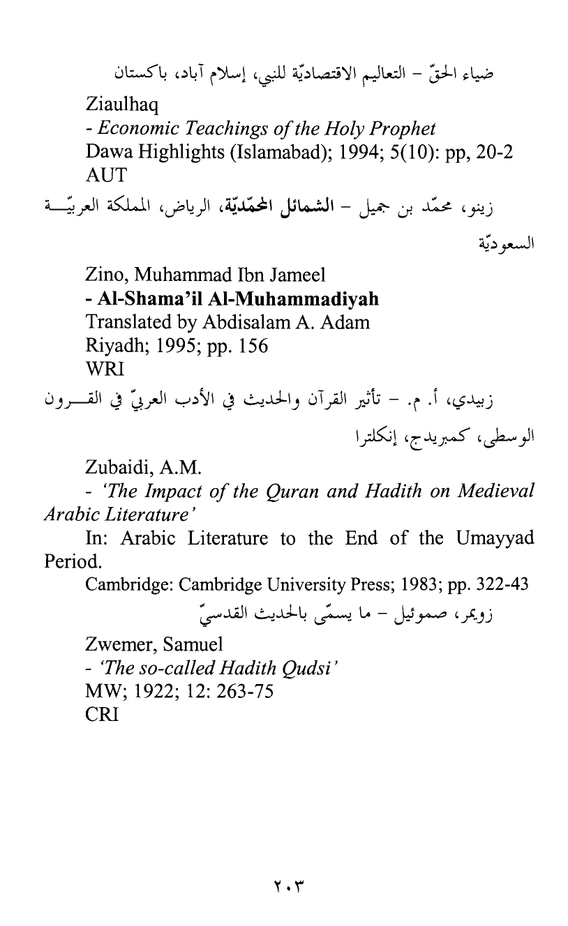 زبيدي، أ. م. - تأثير القرآن والحديث في الأدب العربيّ في القرون الوسطى، كمبريدج، إنكلترا