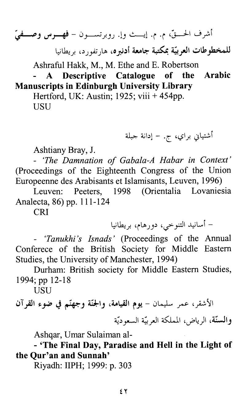 - A Descriptive Catalogue of the Arabic Manuscripts in Edinburgh University Library