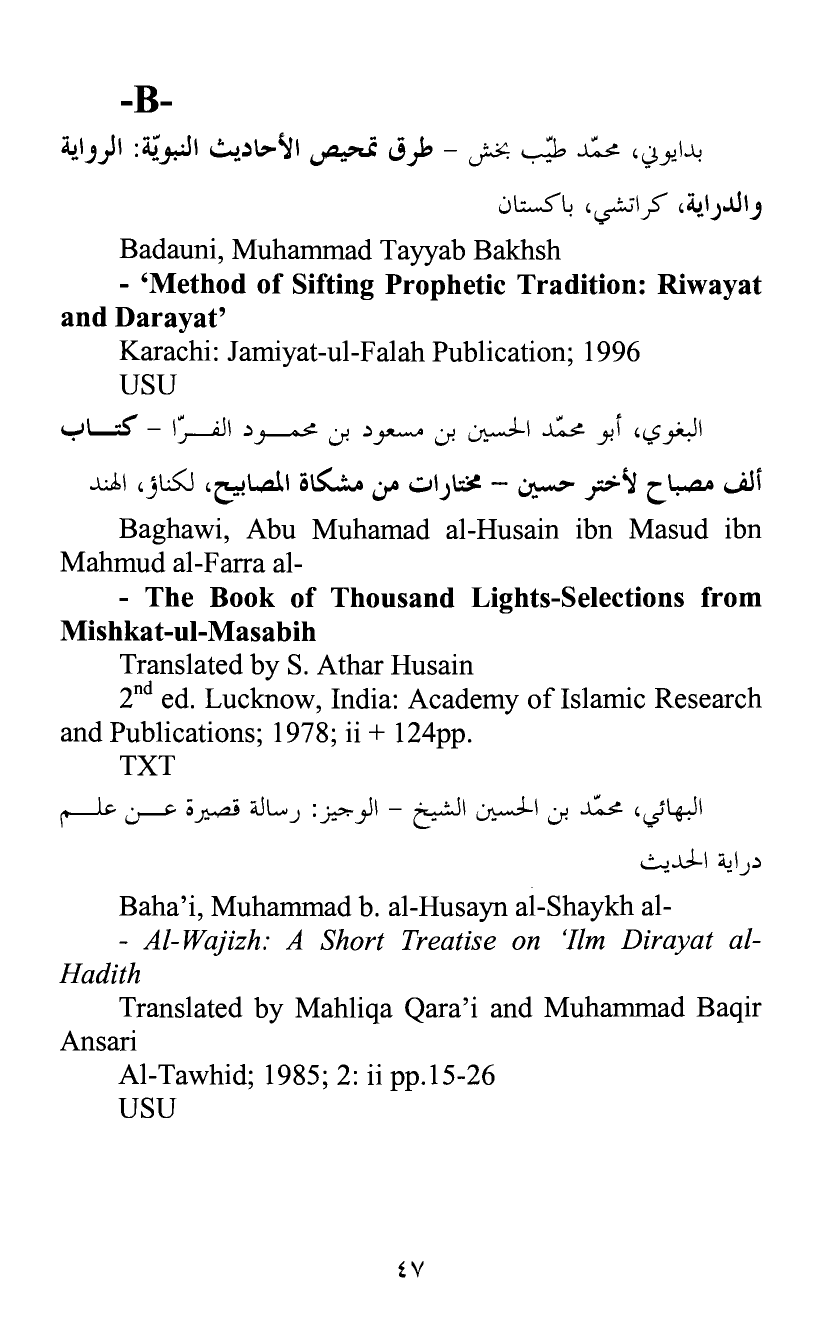 - ‘Method of Sifting Prophetic Tradition: Riwayat and Darayat’