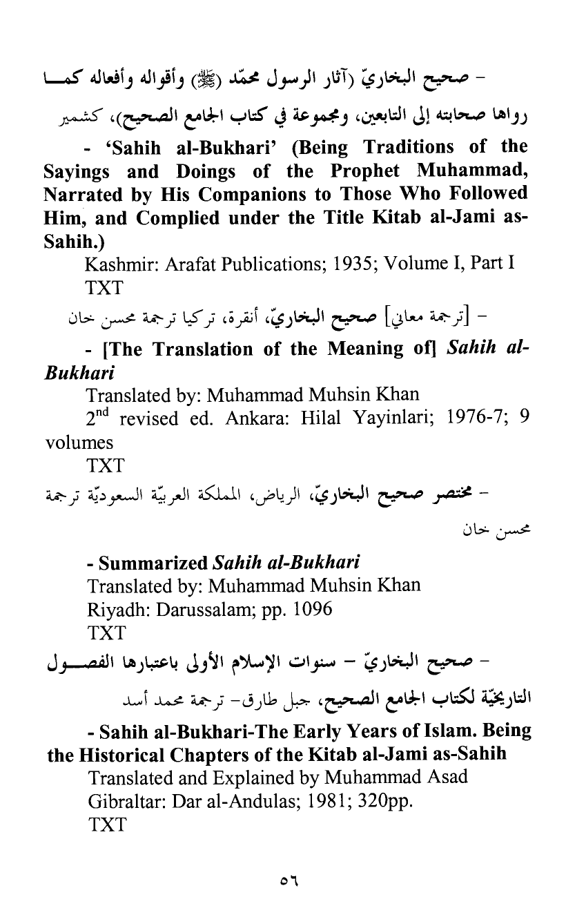 - ‘Sahih al-Bukhari’ (Being Traditions of the Sayings and Doings of the Prophet Muhammad, Narrated by His Companions to Those Who Followed Him, and Complied under the Title Kitab al-Jami as-Sahih.)