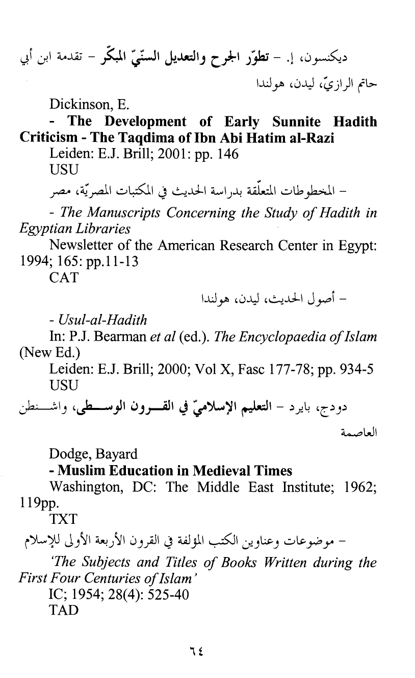 - The Manuscripts Concerning the Study of Hadith in Egyptian Libraries
