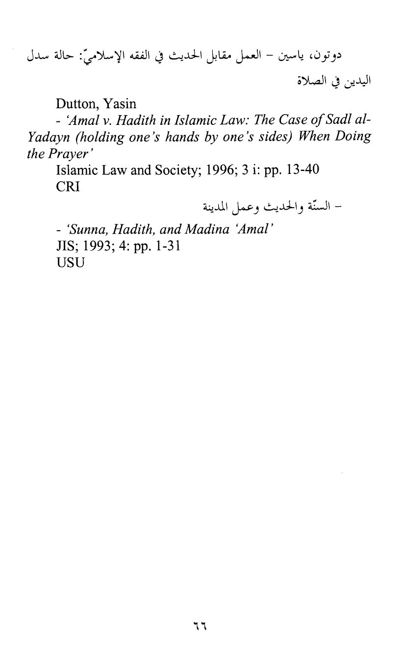 - ‘Amal v. Hadith in Islamic Law: The Case of Sadl al-Yadayn (holding one’s hands by one’s sides) When Doing the Prayer’