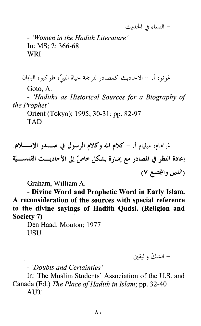 غوتو، أ. - الأحاديث كمصادر لترجمة حياة النبيّ، طوكيو، اليابان