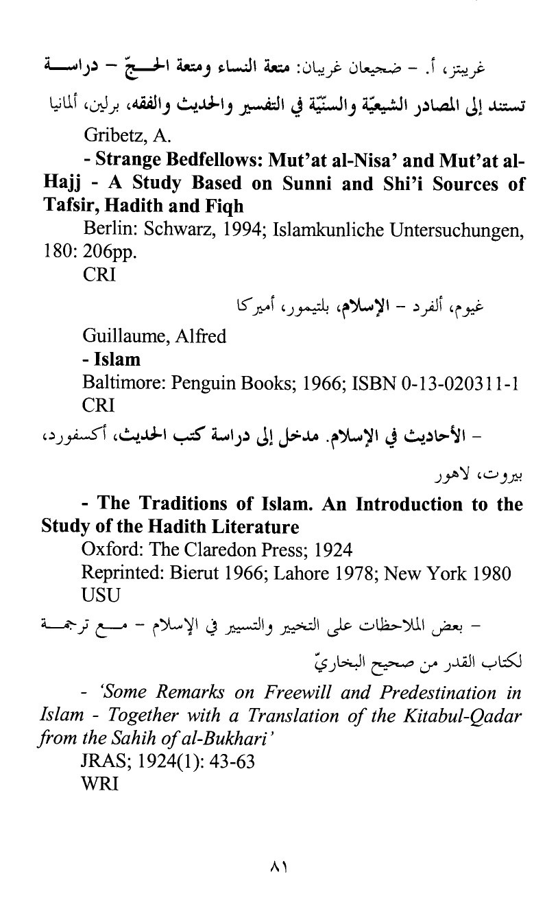 غريبتز، أ. - ضجيعان غريبان: متعة النساء ومتعة الحجّ - دراسة تستند إلى المصادر الشيعيّة والسنّيّة في التفسير والحديث والفقه، برلين، ألمانيا