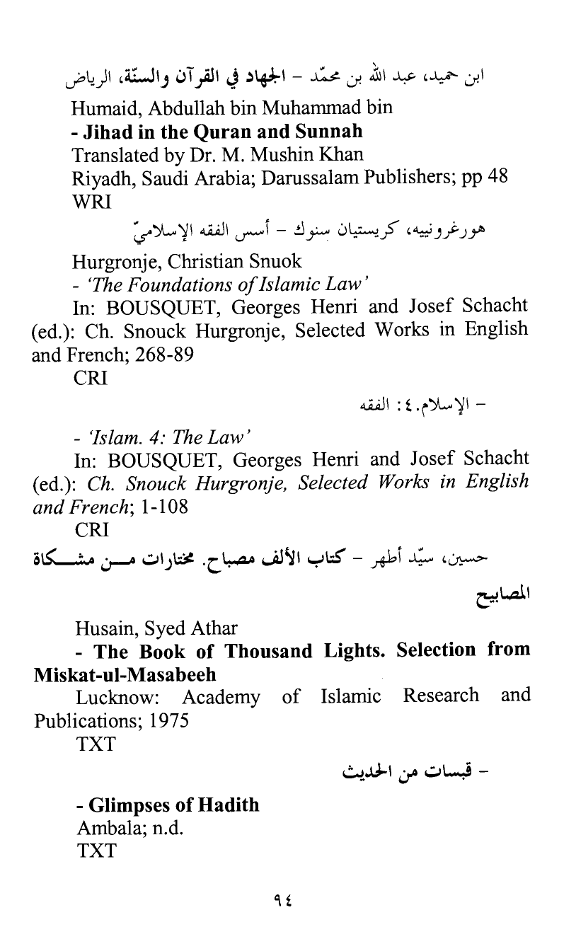 In: BOUSQUET, Georges Henri and Josef Schacht (ed.) : Ch. Snouck Hurgronje, Selected Works in English and French; 268-89