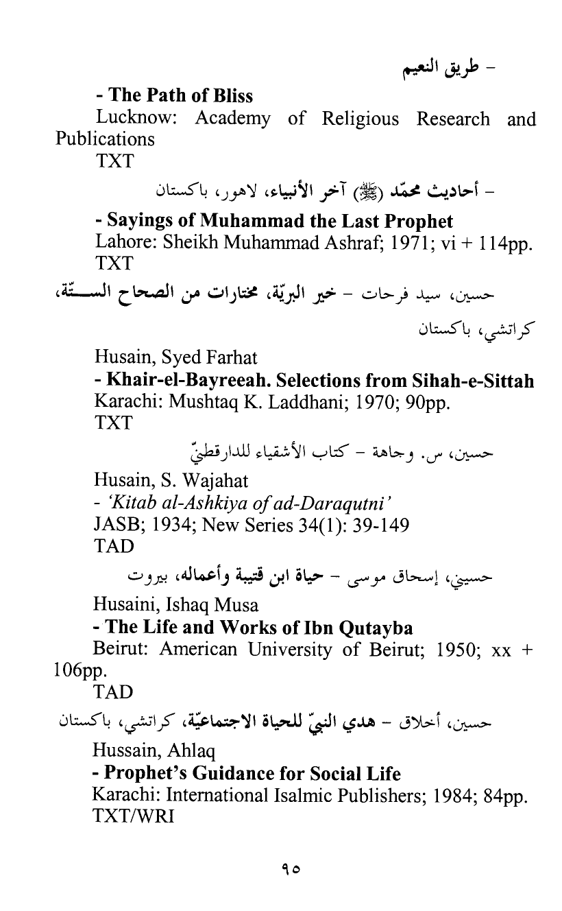 - Khair-el-Bayreeah. Selections from Sihah-e-Sittah