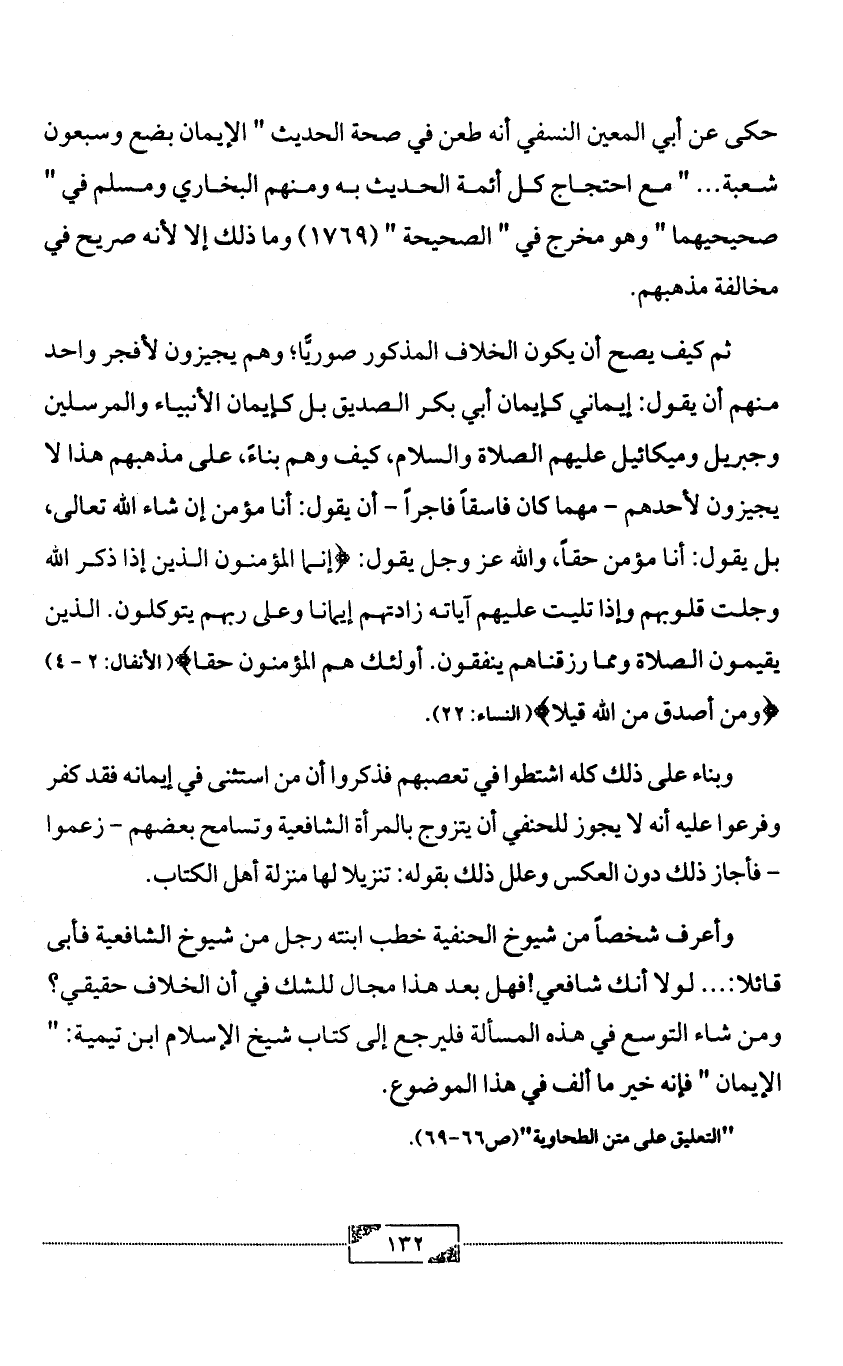 "التعليق على متن الطحاوية" (ص66 - 69).