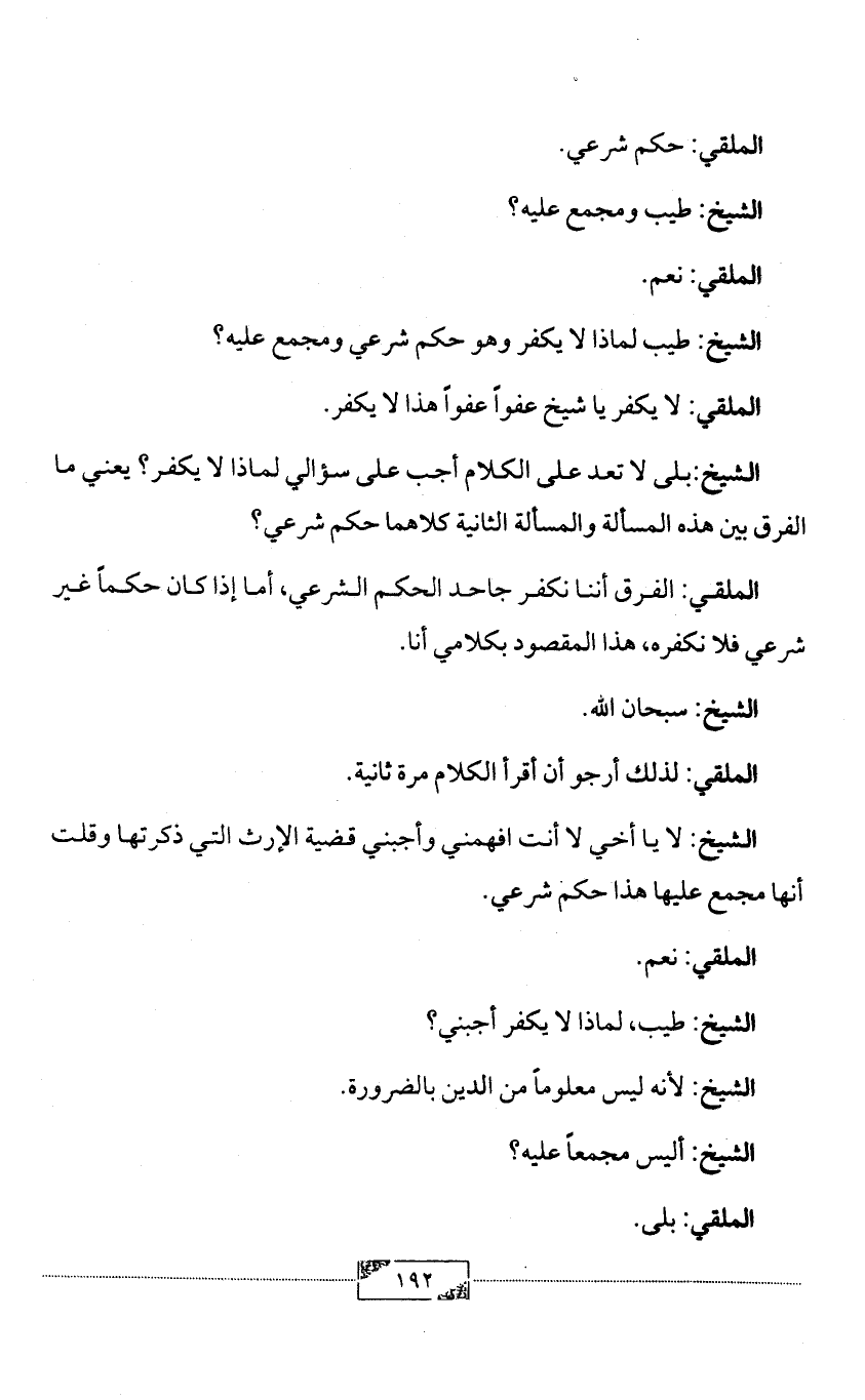 الشيخ: طيب لماذا لا يكفر وهو حكم شرعي ومجمع عليه؟