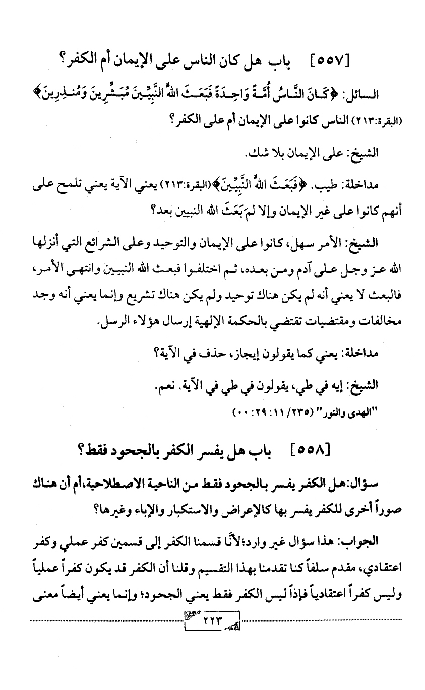 السائل: {كَانَ النَّاسُ أُمَّةً وَاحِدَةً فَبَعَثَ اللَّهُ النَّبِيِّينَ مُبَشِّرِينَ وَمُنذِرِينَ} (البقرة:213) الناس كانوا على الإيمان أم على الكفر؟