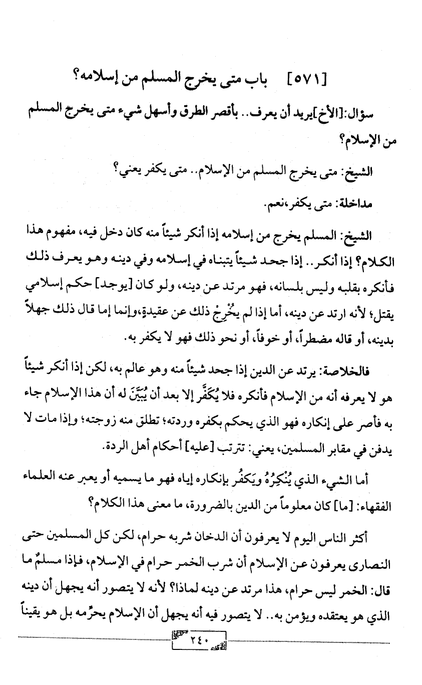 الشيخ: متى يخرج المسلم من الإسلام .. متى يكفر يعني؟