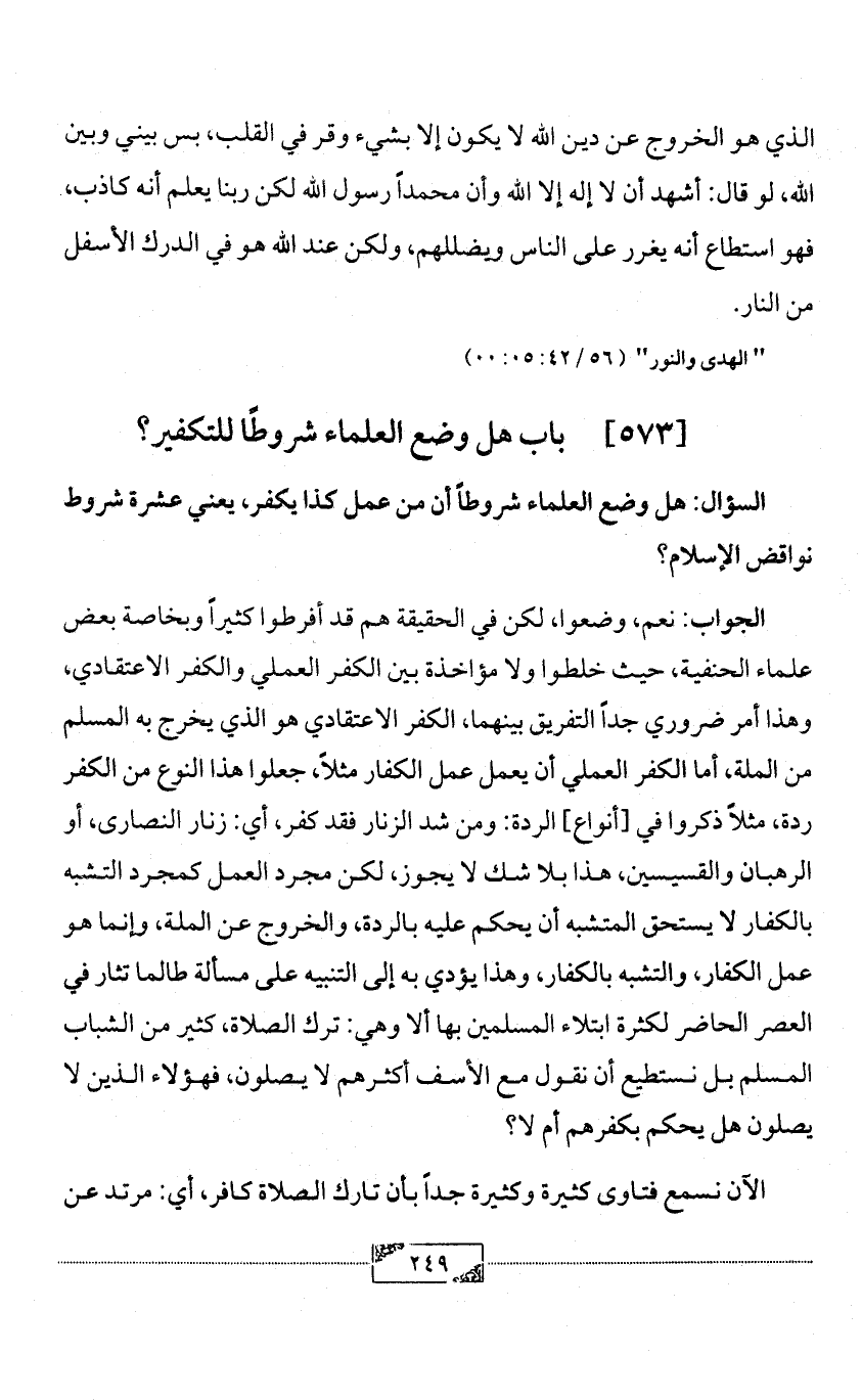 [573] باب هل وضع العلماء شروطًا للتكفير؟