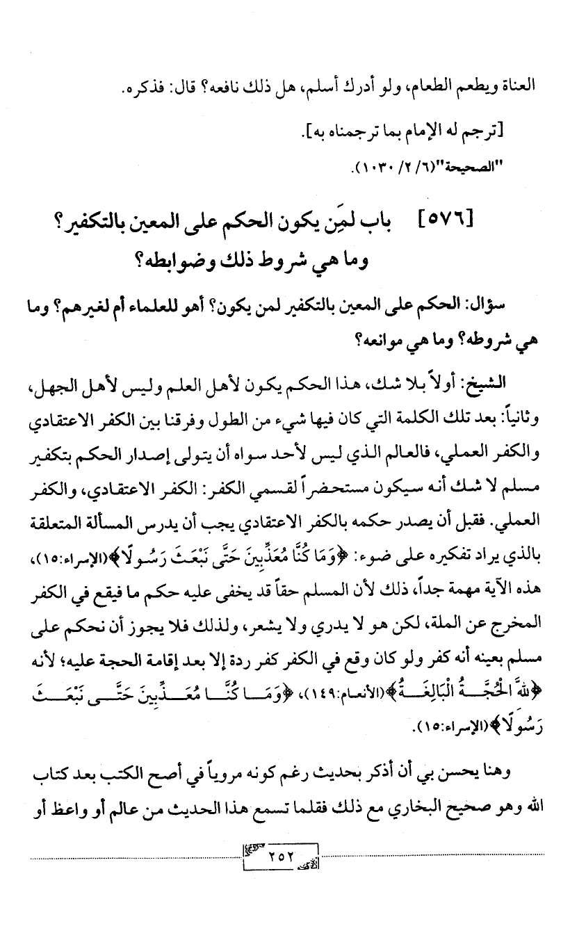 [576] باب لِمَن يكون الحكم على المعين بالتكفير؟