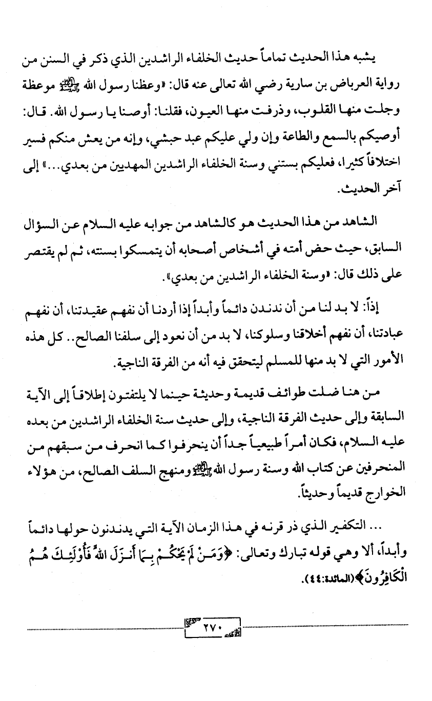 من هنا ضلت طوائف قديمة وحديثة حينما لا يلتفتون إطلاقاً إلى الآية السابقة وإلى حديث الفرقة الناجية، وإلى حديث سنة الخلفاء الراشدين من بعده عليه السلام، فكان أمراً طبيعياً جداً أن ينحرفوا كما انحرف من سبقهم من المنحرفين عن كتاب الله وسنة رسول الله - صلى الله عليه وآله وسلم - ومنهج السلف الصالح، من هؤلاء الخوارج قديماً وحديثاً.