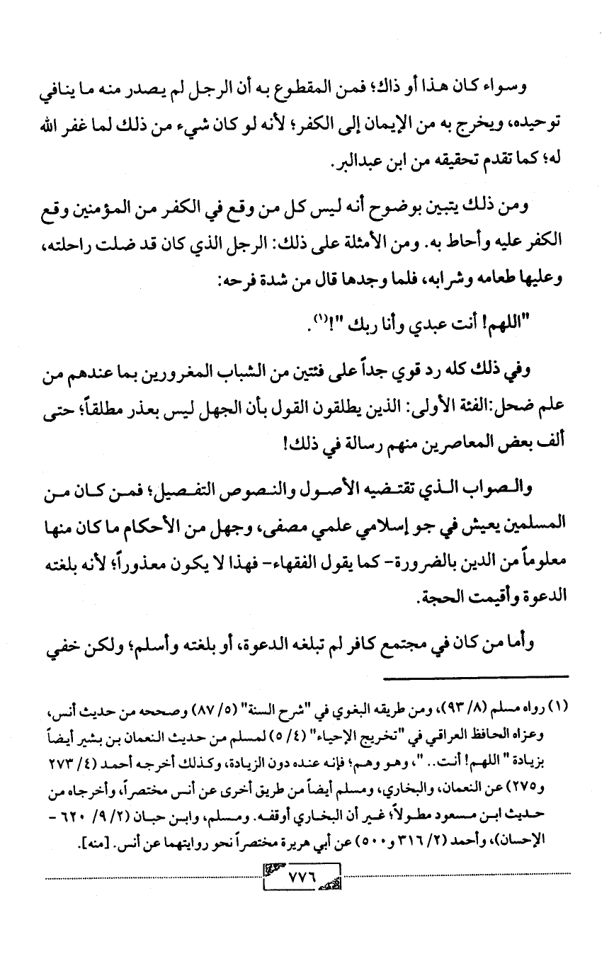 وسواء كان هذا أو ذاك؛ فمن المقطوع به أن الرجل لم يصدر منه ما ينافي توحيده، ويخرج به من الإيمان إلى الكفر؛ لأنه لو كان شيء من ذلك لما غفر الله له؛ كما تقدم تحقيقه من ابن عبد البر.