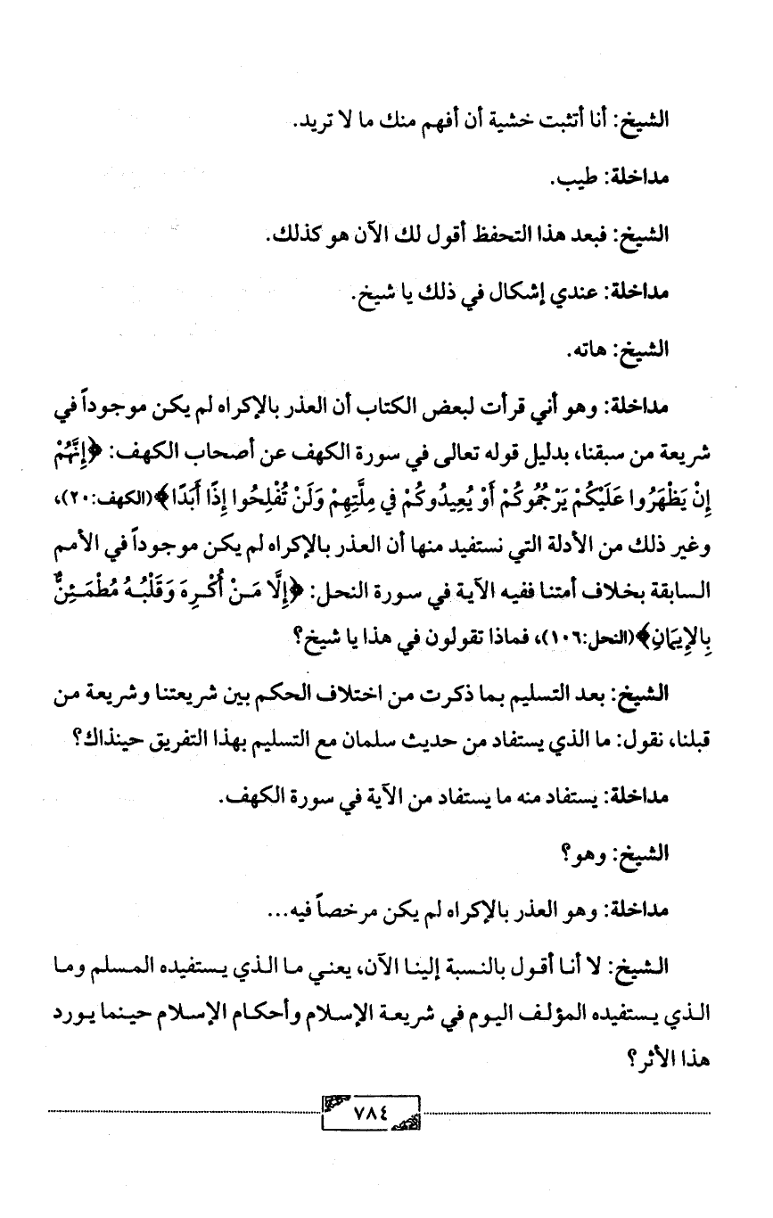 الشيخ: أنا أتثبت خشية أن أفهم منك ما لا تريد.