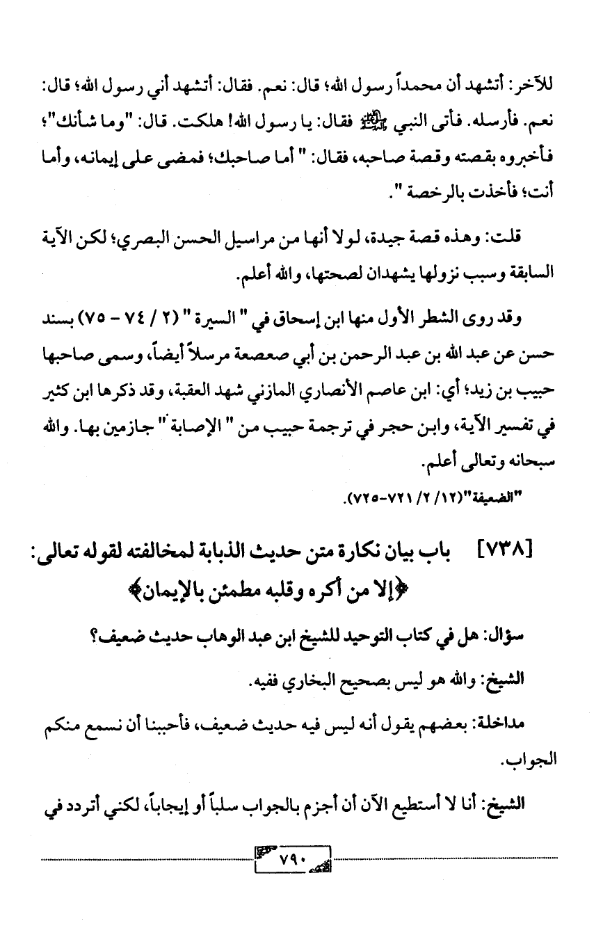 سؤال: هل في كتاب التوحيد للشيخ ابن عبد الوهاب حديث ضعيف؟