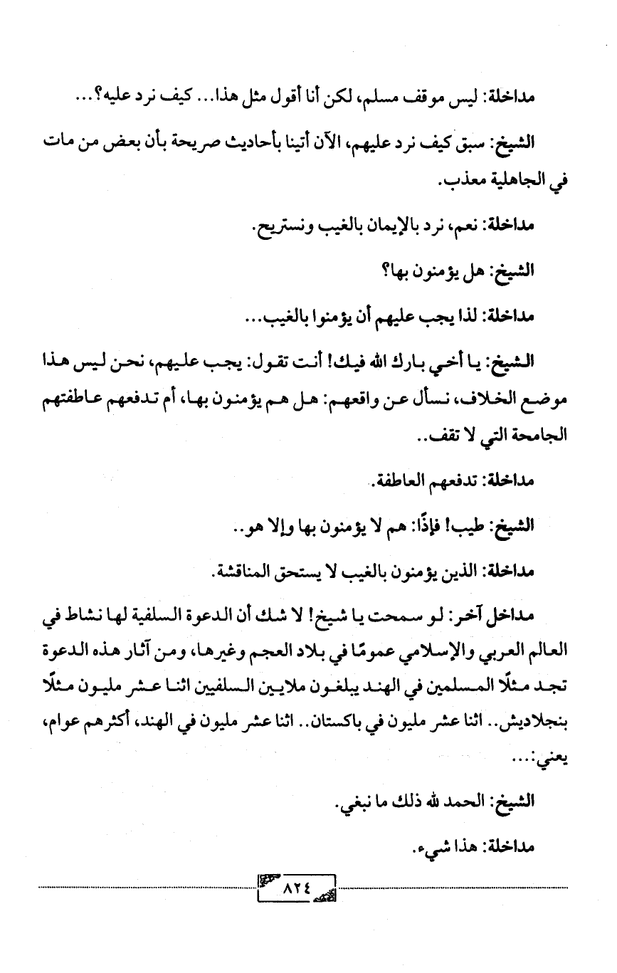 مداخل آخر: لو سمحت يا شيخ! لا شك أن الدعوة السلفية لها نشاط في العالم العربي والإسلامي عمومًا في بلاد العجم وغيرها، ومن آثار هذه الدعوة تجد مثلًا المسلمين في الهند يبلغون ملايين السلفيين اثنا عشر مليون مثلًا بنجلاديش .. اثنا عشر مليون في باكستان .. اثنا عشر مليون في الهند، أكثرهم عوام، يعني: ...