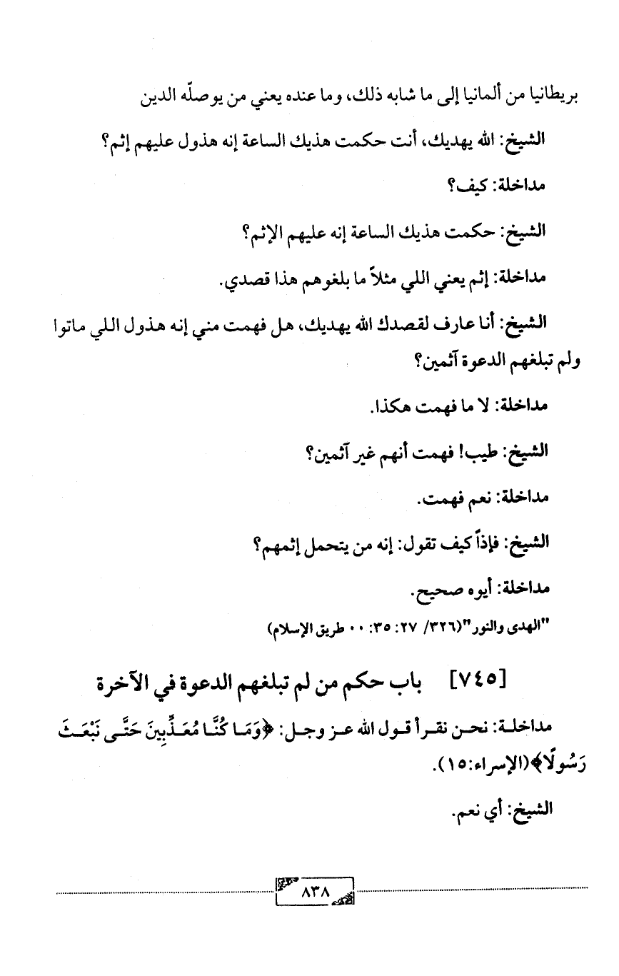 [745] باب حكم من لم تبلغهم الدعوة في الآخرة
