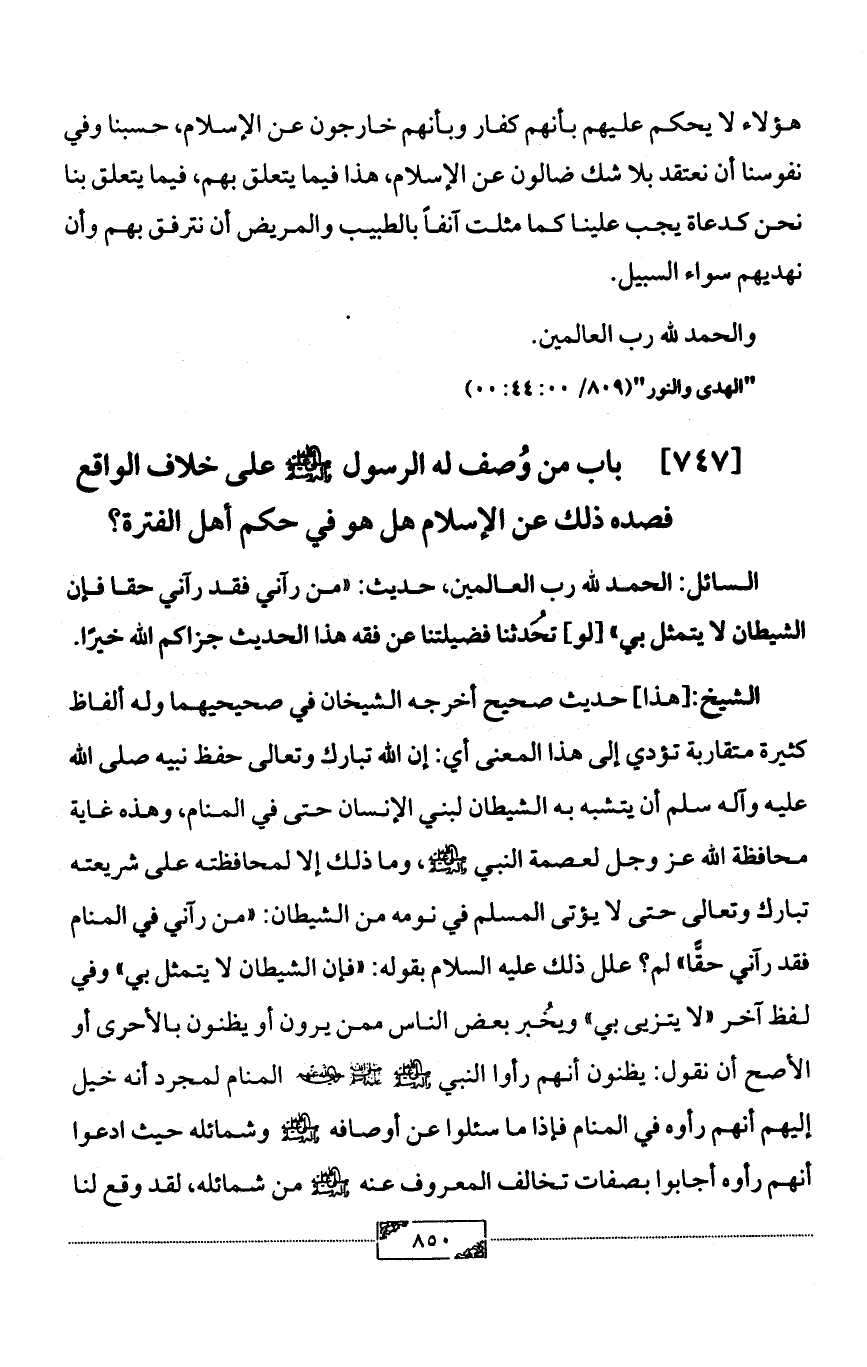 [747] باب من وُصف له الرسول - صلى الله عليه وآله وسلم - على خلاف الواقع فصده ذلك عن الإسلام هل هو في حكم أهل الفترة؟