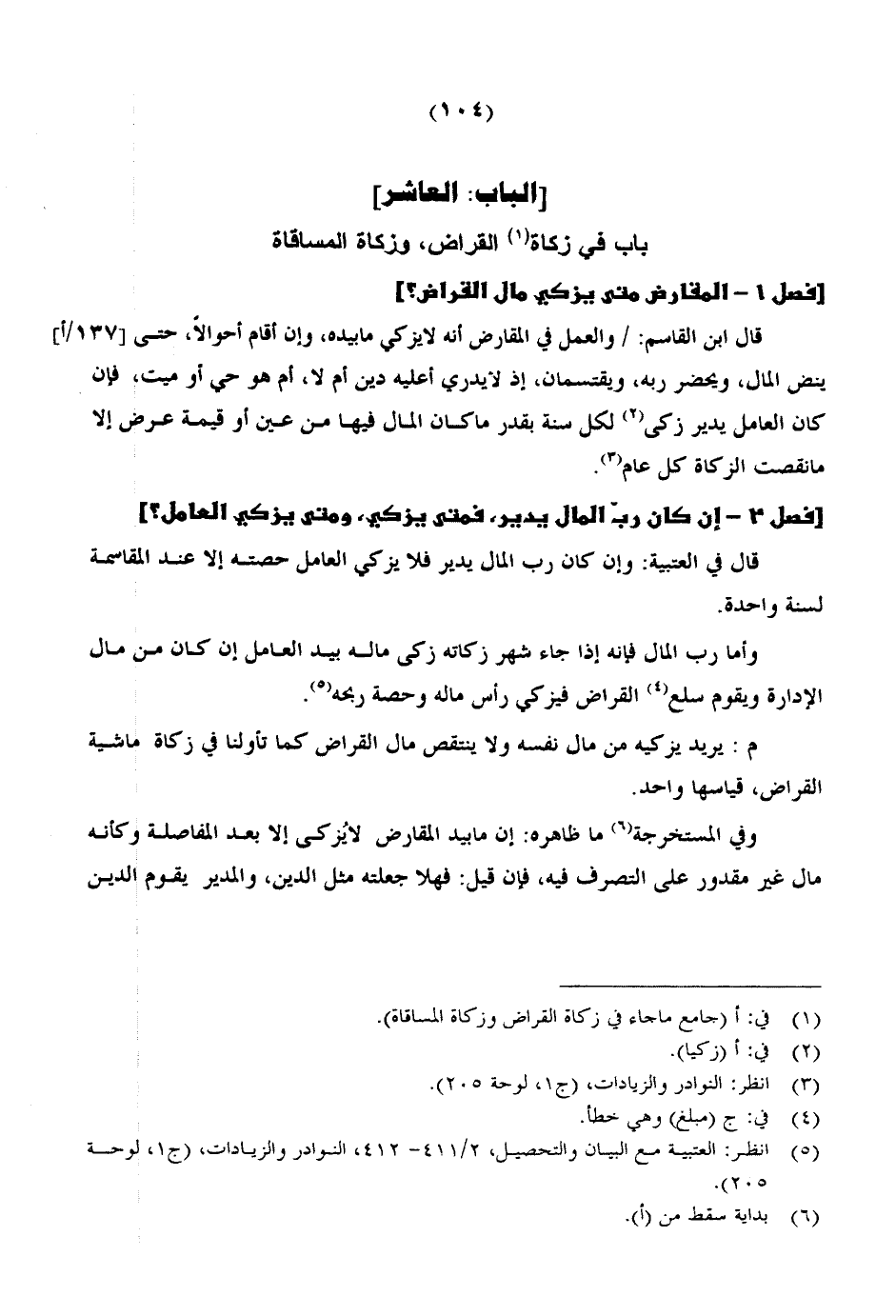فصل 1 - المقارض متى يزكي مال القراض؟