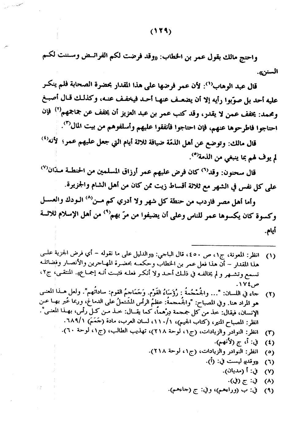 قال سحنون: وقد كان فرض عليهم عمر أرزاق المسلمين من الحنطة مدان على كل نفس في الشهر مع ثلاثة أقساط زيت ممن كان من أهل الشام والجزيرة.