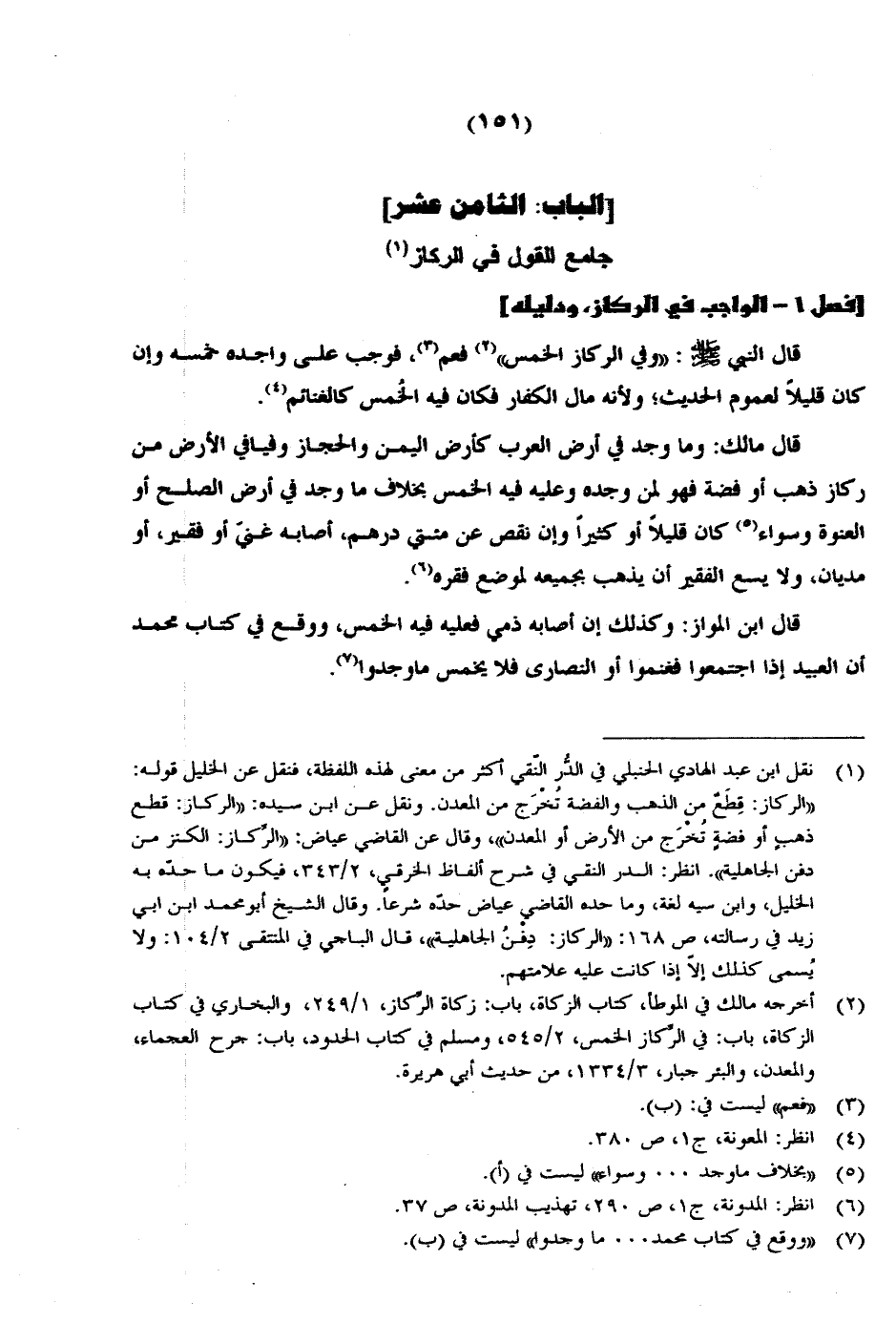 قال مالك: وما وجد في أرض العرب كأرض اليمن والحجاز وفيافي الأرض من ركاز ذهب أو فضة فهو لمن وجده وعليه فيه الخمس بخلاف ما وجد في أرض الصلح أو العنوه وسواء كان قليلا أو كثيرا وإن نقص عن مائتي درهم، أصابه غني أو فقير، أو مديان، ولا يسع الفقير أن يذهب بجميعه لموضع فقره.