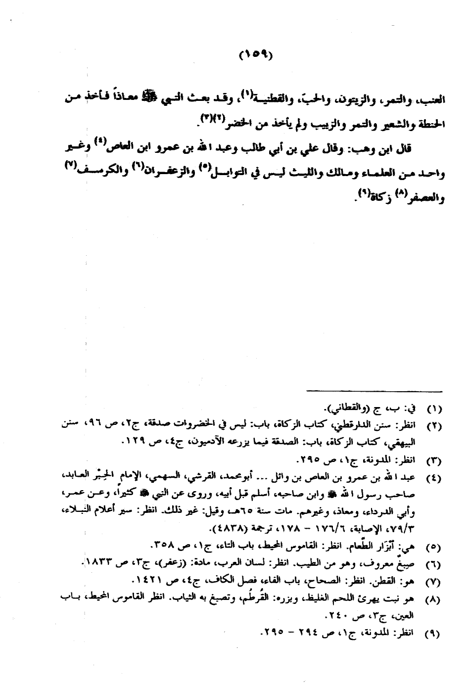 قال ابن وهب: وقال علي بن أبي طالب وعبد الله بن عمرو ابن العاص وغير واحد من العلماء ومالك والليث ليس في التوابل والزعفران والكرسف والعصفر زكاة.