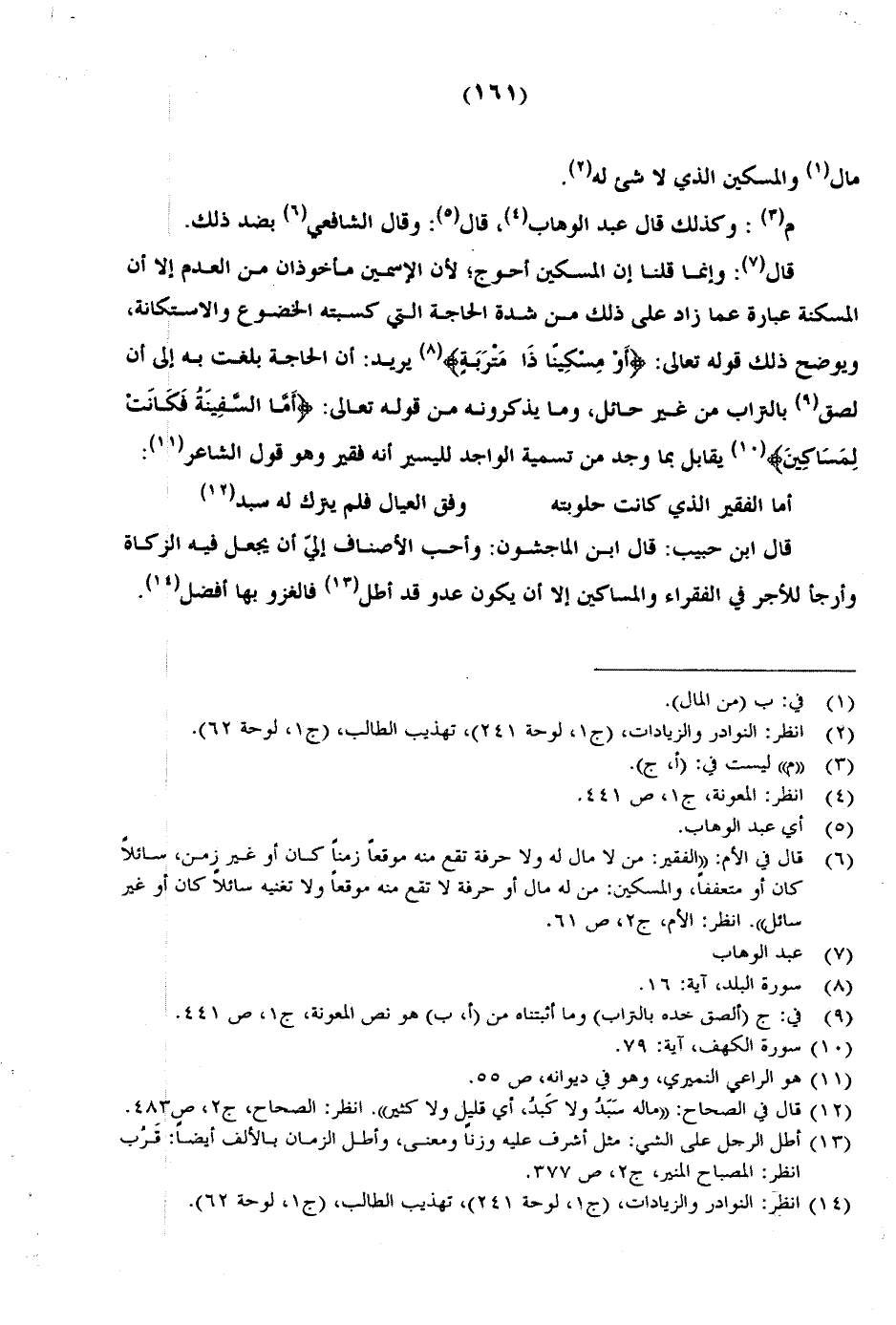 يريد: أن الحاجة بلغت به الى أن لصق بالتراب من غير حائل، وما يذكرونه من قوله تعالى: {أَمَّا السَّفِينَةُ فَكَانَتْ لِمَسَاكِينَ} يقابل بما وجد من تسمية الواجد لليسير أنه فقير وهو قول الشاعر:
