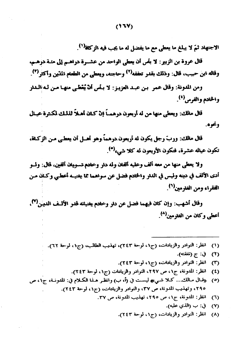قال عروة بن الزبير: لا بأس أن يعطي الواحد من عشرة دراهم الى مئة درهم، وقال ابن حبيب، قال: وذلك بقدر تعففه وحاجته، ويعطي من الطعام المدين وأكثر.