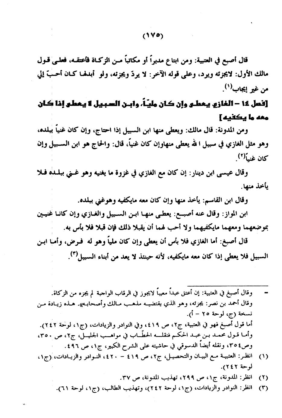 قال أصبغ: أما الغازي فلا بأس أن يعطي وإن كان ملياً وهو له فرض، وأما ابن فلا يعطي إذا كان معه ما يكفيه، لأنه حينئذ لا يعد من أبناء السبيل.