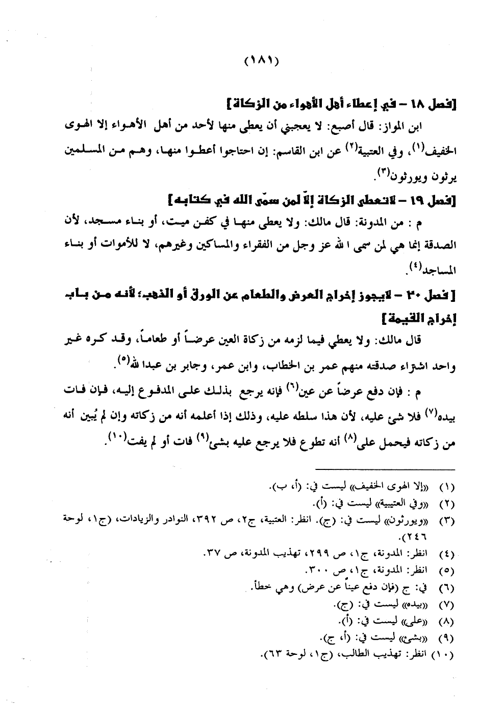 م: من المدونة: قال مالك: ولا يعطى منها في كفن ميت، أو بناء مسجد، لأن الصدقة إنما هي لمن سمى الله عز وجل من الفقراء والمساكين وغيرهم، لا للأموات أو بناء المساجد.