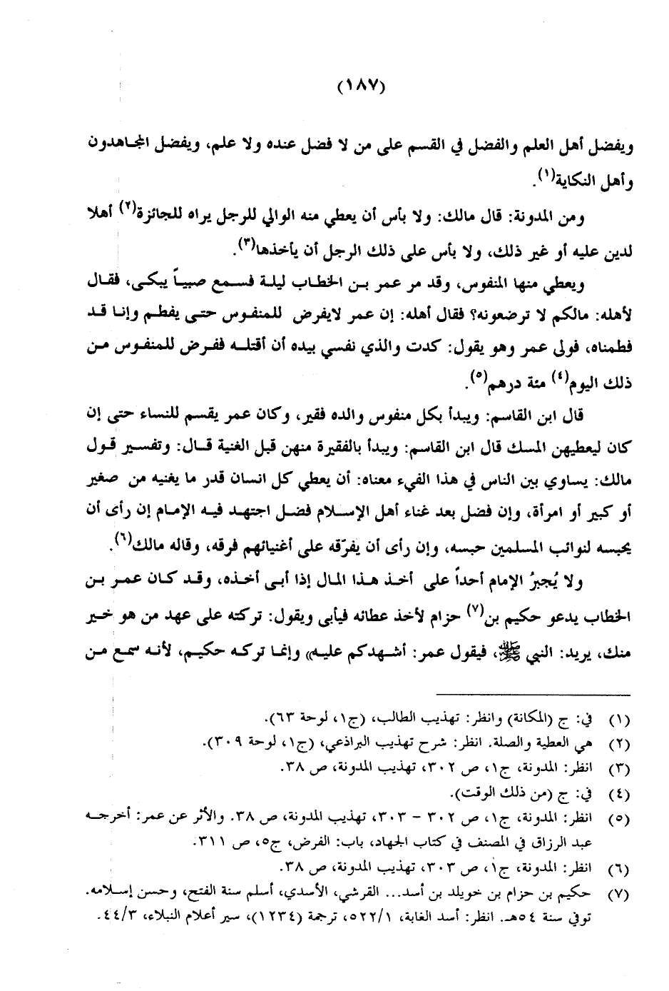 ولا يجبر الإمام أحداً على أخذ هذا المال إذا أبى أخذه، وقد كان عمر بن الخطاب يدعو حكيم بن حزام لأخذ عطائه فيأبى ويقول: تركته على عهد من هو خير منك، يريد: النبي صلى الله عليه وسلم فيقول: عمر: أشهدكم عليه" وإنما تركه حكيم، لأنه سمع من