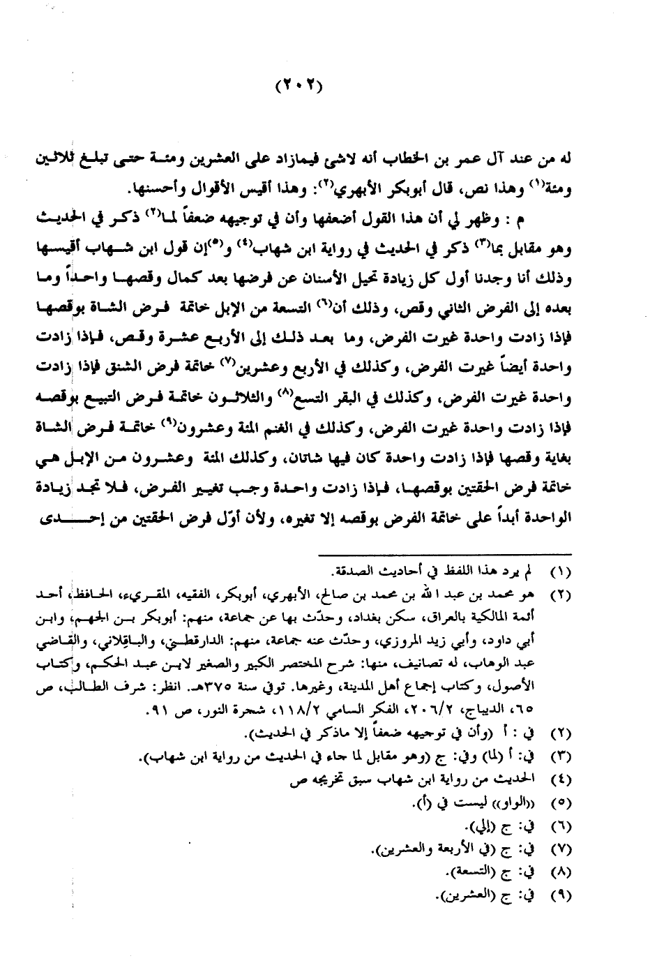 م: وظهر لي أن هذا القول أضعفها وأن في توجيهه ضعفاً لما ذكر في الحديث وهو مقابل بما ذكر في الحديث في رواية ابن شهاب وإن قول ابن شهاب أقيسها وذلك أنا وجدنا أول كل زيادة تحيل الأسنان عن فرضها بعد كمال وقصها واحداً وما بعده إلى الفرض الثاني وقص، وذلك أن التسعة من الإبل خاتمة فرض الشاة بوقصها فإذا زادت واحدة غيرت الفرض، وما بعد ذلك إلى الأربع عشرة وقص، فإذا زادت واحدة أيضاً غيرت الفرض، وكذلك في الأربع وعشرين خاتمة فرض الشنق فإذا زادت واحدة غيرت الفرض، وكذلك في البقر التسع والثلاثون خاتمة فرض التبيع بوقصه فإذا زادت واحدة غيرت الفرض، وكذلك في الغنم المئة وعشرون خاتمة فرض الشاة بغاية وقصها فإذا زادت واحدة كان فيها شاتان، وكذلك المئة وعشرون من الإبل هي خاتمة فرض الحقتين بوقصها، فإذا زادت واحدة وجب تغيير الفرض، فلا تجد زيادة الواحدة أبداً على خاتمة الفرض بوقصه إلا تغيره، ولأن أول فرض الحقتين من إحدى