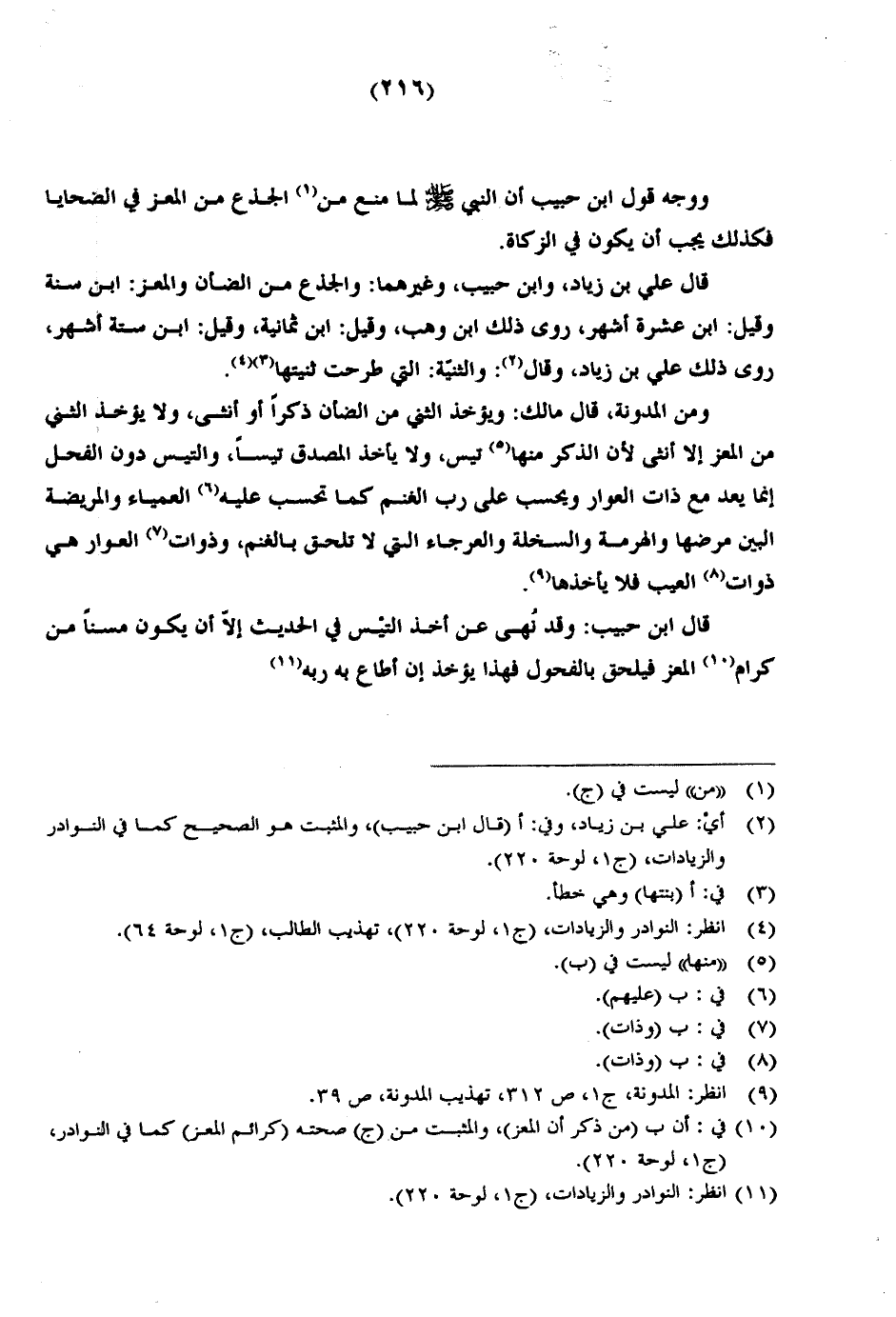 قال ابن حبيب: وقد نُهى عن أخذ التيس في الحديث إلا أن يكون مسناً من كرام المعز فيلحق بالفحول لهذا يؤخذ إن أطاع به ربه.