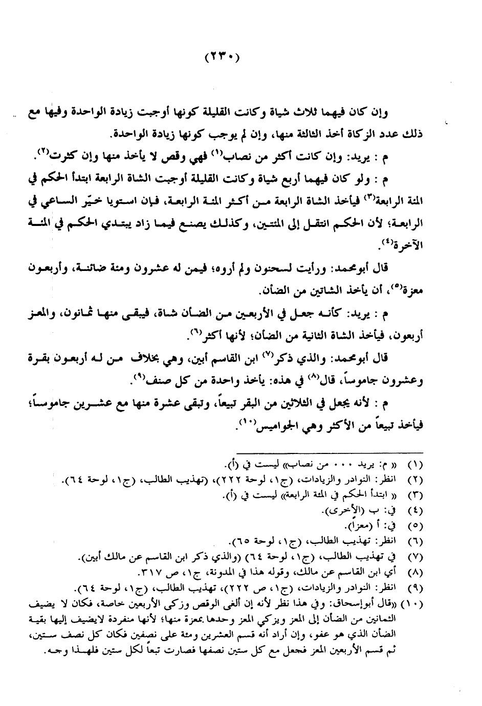 قال أبو محمد: ورأيت لسحنون ولم أروه؛ فيمن له عشرون ومئة ضائنة، وأربعون معزة، أن يأخذ الشاتين من الضأن.