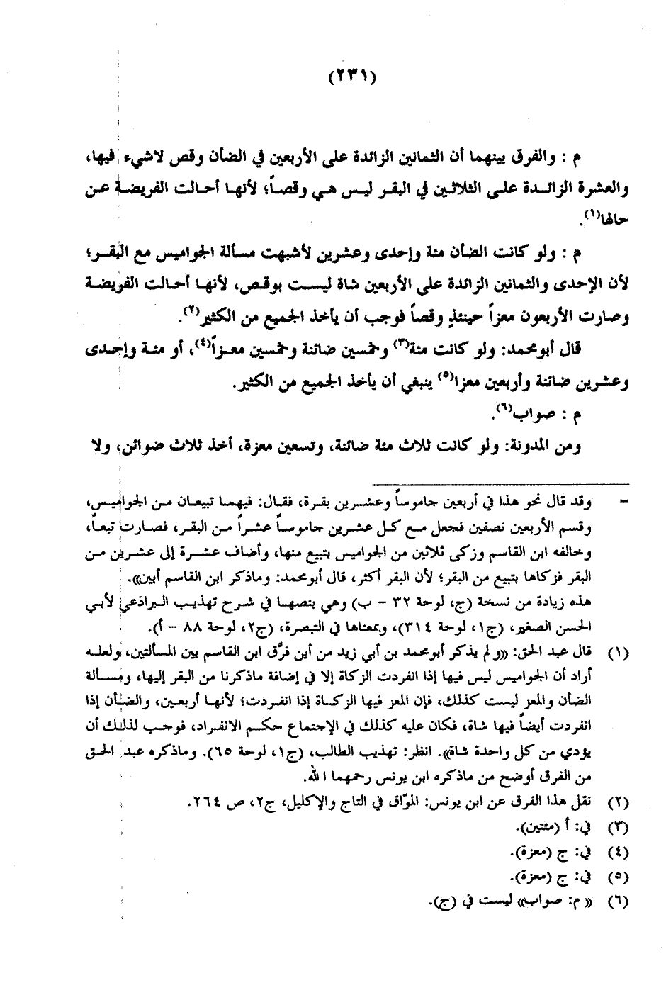 قال أبو محمد: ولو كانت مئة وخمسين ضائنة وخمسين معزاً، أو مئة وإحدى وعشرين ضائنة وأربعين معزاً ينبغي أن يأخ الجميع من الكثير.