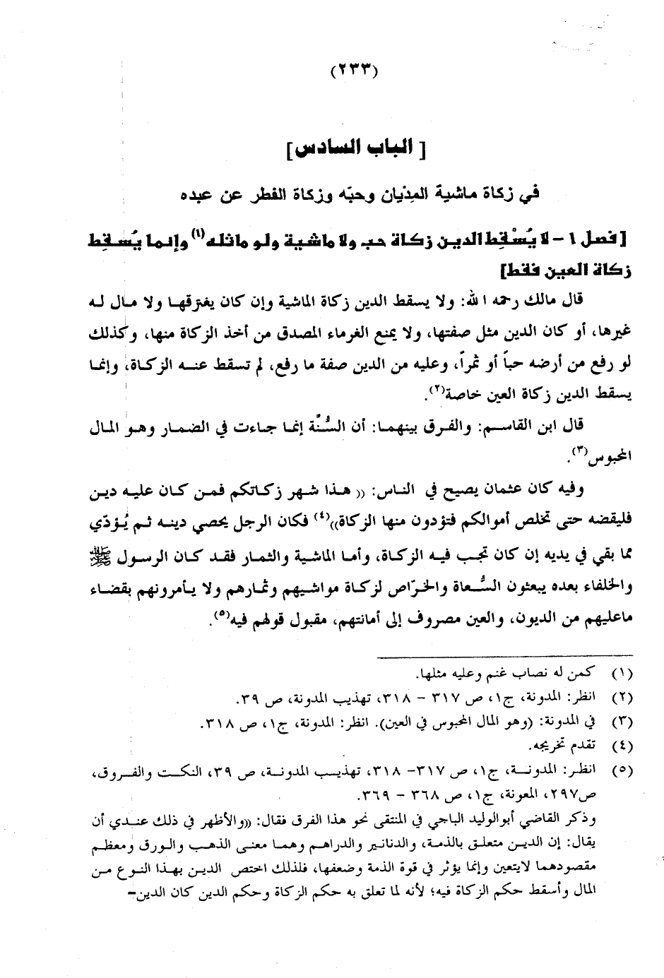 [فصل 1 - لا يُسْقِط الدين زكاة حب ولا ماشية ولو ماثله وإنما يُسقِط زكاة العين فقط]