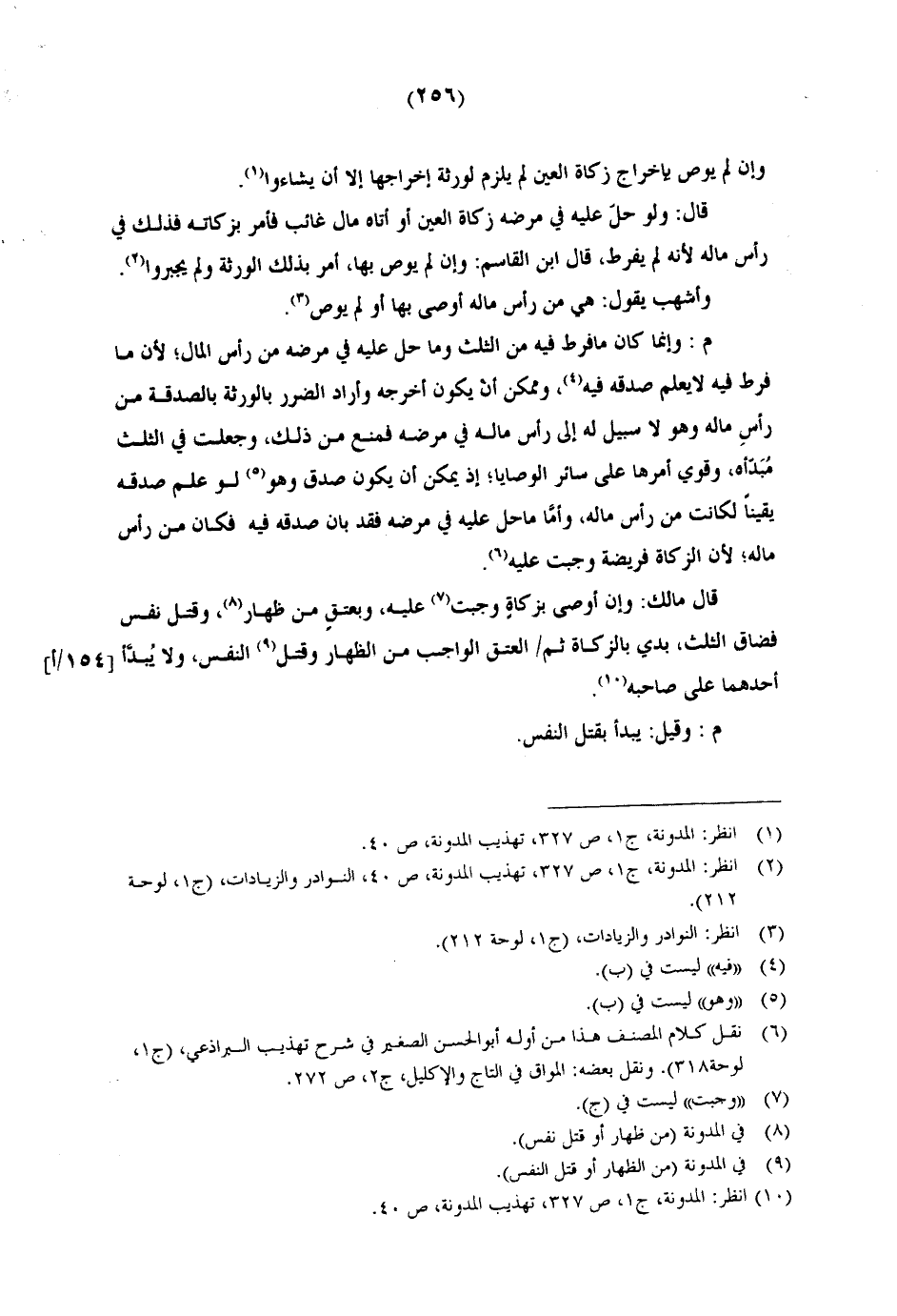 قال: ولو حل عليه في مرضه زكاة العين أو أتاه مال غائب فأمر بزكاته فذلك في رأس ماله لأنه لم يفرط، قال ابن القاسم: وإن لم يوص بها، أمر بذلك الورثة ولم يجبروا.