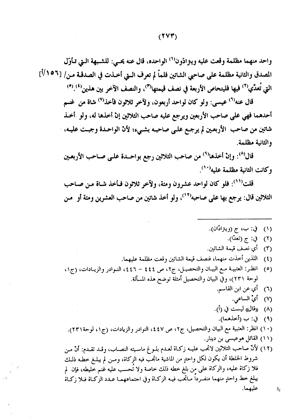 قال عنه عيسى: ولو كان لواحد أربعون، ولآخر ثلاثون فأخذ شاة من غنم أحدهما فهي على صاحب الأربعين ويرجع عليه صاحب الثلاثين إن أخذها له، ولو أخذ شاتين من صاحب الأربعين لم يرجع على صاحبه بشيء؛ لأن الواحدة وجبت عليه، والثانية مظلمة.