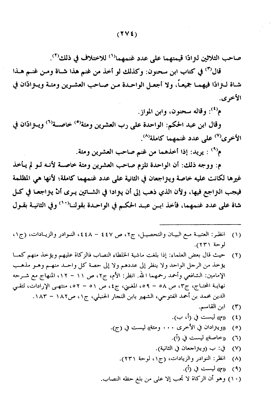 وقال ابن عبد الحكم: الواحدة على رب العشرين ومئة خاصة ويترادان في الأخرى على عدد غنمهما كاملة.