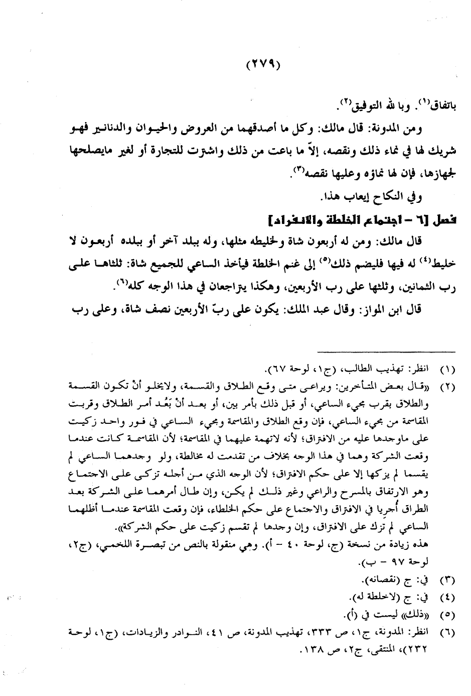 قال مالك: ومن له أربعون شاة ولخليطه مثلها، وله ببلد آخر أو ببلده أربعون لا خليط له فيها فليضم ذلك إلى غنم الخلطة فيأخذ الساعي للجميع شاة: ثلثاها على رب الثمانين، وثلثها على رب الأربعين، وهكذا يتراجعان في هذا الوجه كله.