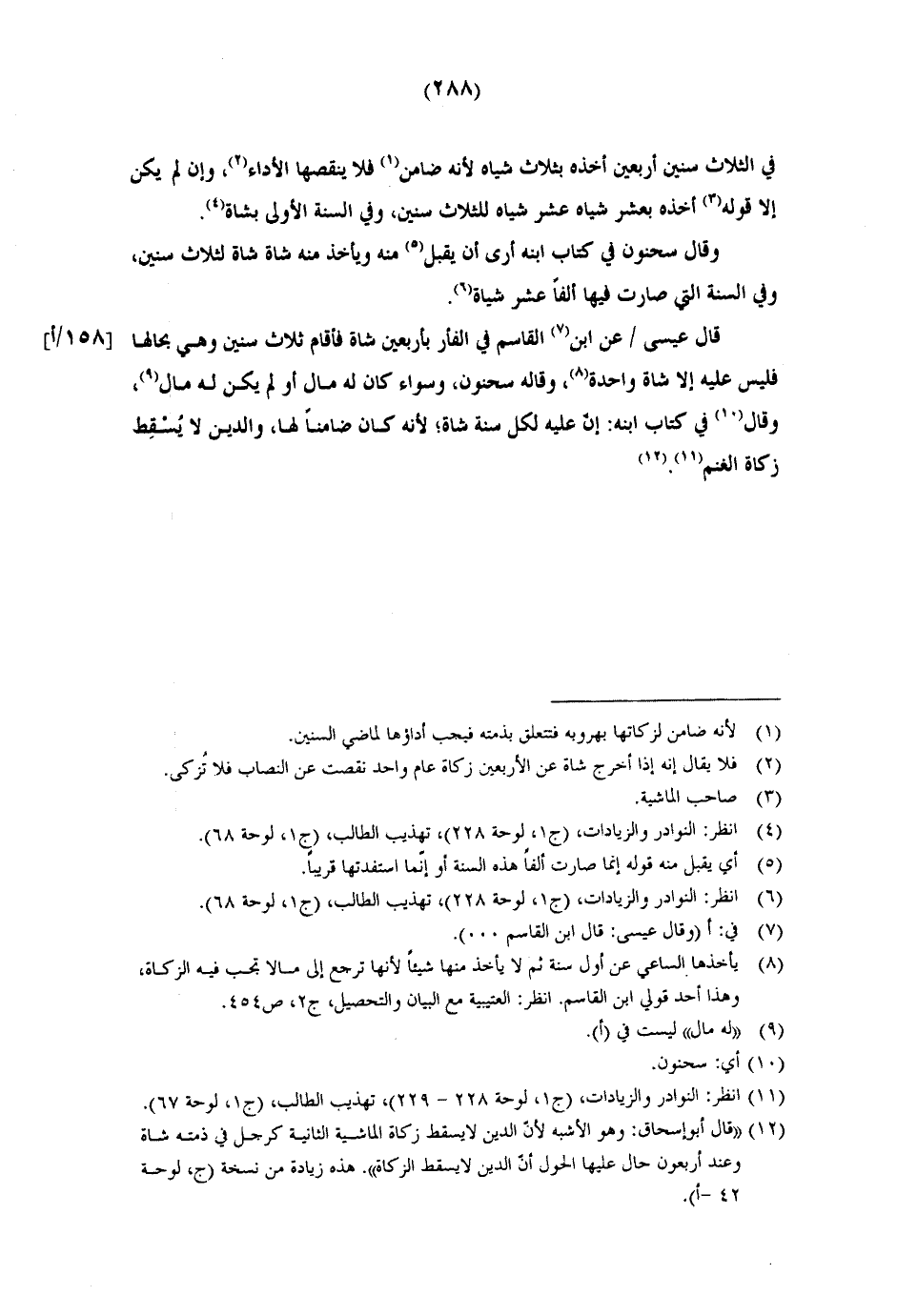 وقال سحنون في كتاب ابنه أرى أن يقبل منه ويأخذ منه شاة شاة لثلاث سنين، وفي السنة التي صارت فيها ألفًا عشر شياة.