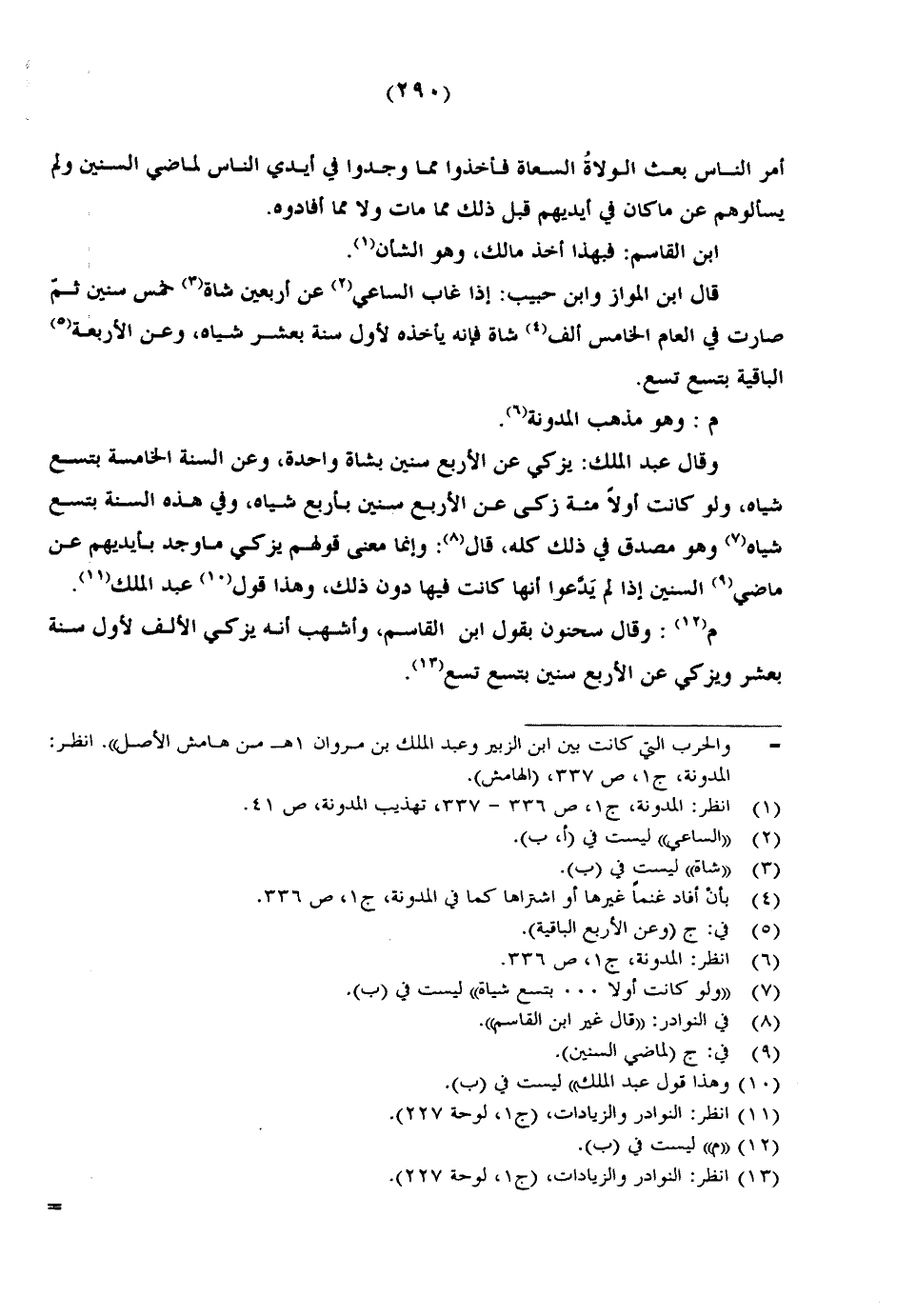 وقال عبد الملك: يزكي عن الأربع سنين بشاة واحدة، وعن السنة الخامسة بتسع شياه، ولو كانت أولاً مئة زكى عن الأربع سنين بأربع شياه، وفي هذه السنة بتسع شياه وهو مصدق في ذلك كله، قال: وإنما معنى قولهم يزكي ما وجد بأيديهم عن ماضي السنين إذا لم يدعوا أنها كانت فيها دون ذلك، وهذا قول عبد الملك.