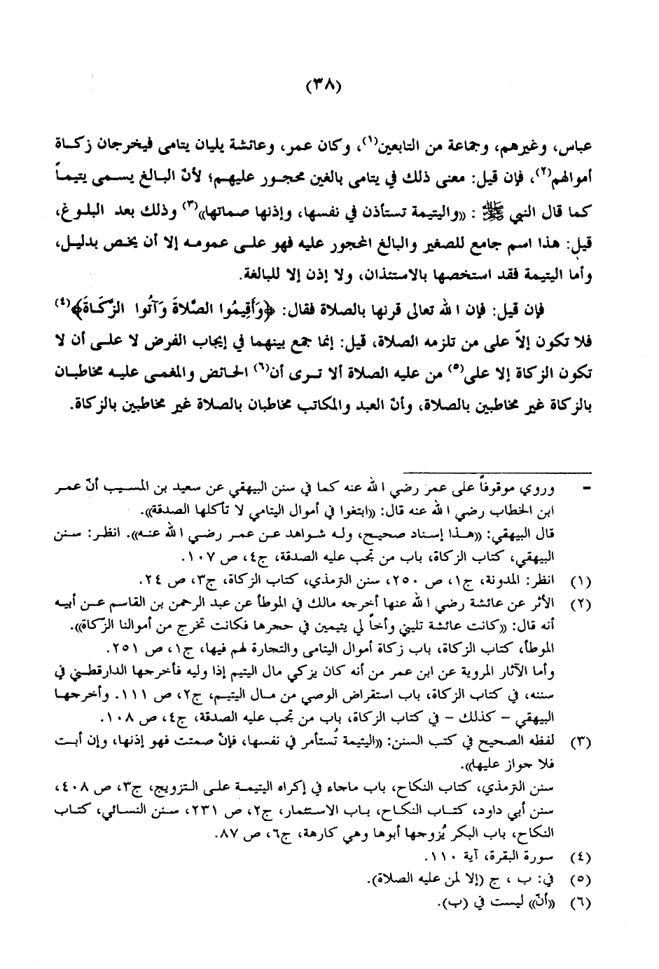 عباس وغيرهم، وجماعة من التابعين، وكان عنر، وعائشة يليان فيخرجان زكاة أموالهم، فإن قيل: معنى في يتامى بالغين محجور عليهم؛ لأن البالغ يسمى يتيماً كما قال النبي صلى الله عليه وسلم: ((واليتيمة تستأذن في نفسها، وإذنها صماتها)) وذلك بعد البلوغ، قيل: هذا اسم جامع للصغير والبالغ المحجور عليه فهو على عمومه إلا أن يخص بدليل، وأم اليتيمة فقد استخصها بالاستئذان ولا إذن إلا للبالغة.