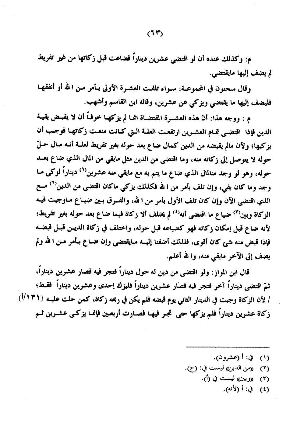 م: وكذلك عنده أن لو اقتضى عشرين دينارًا فضاعت قبل زكاتها من غير تفريط لم يضف إليها ما يقتضي.