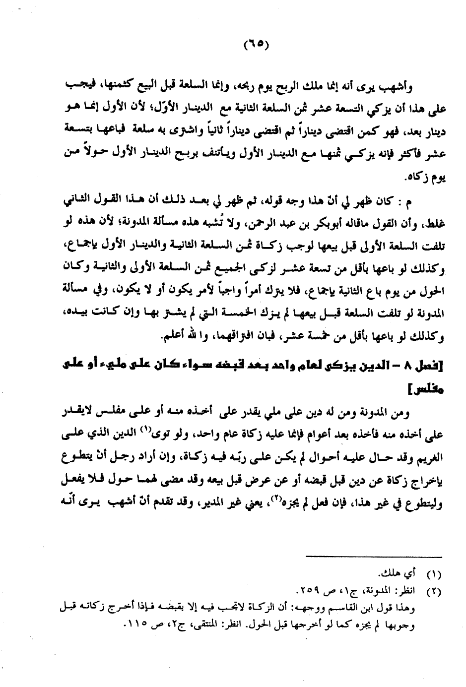 [فصل 8 - الدين يزكي لعام واحد بعد قبضه سواء كان على مليء أو على مفلس]