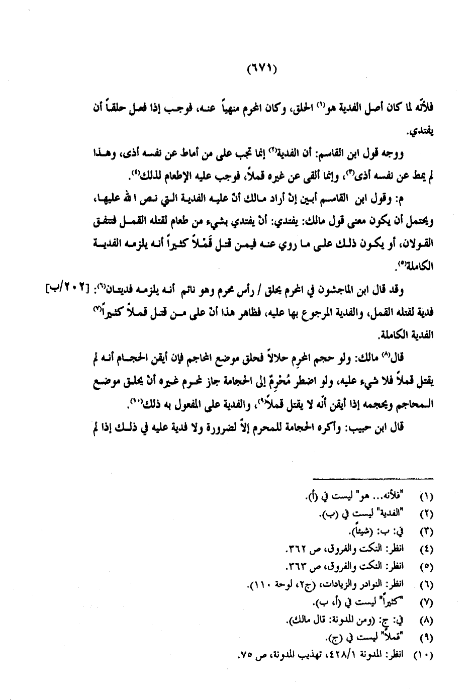 م: وقول ابن القاسم أبين إن أراد مالك أن عليه الفدية التي نص الله عليها، ويحتمل أن يكون معنى قول مالك: يفتجي: أن يفتدي بشيء من طعام لقتله القمل فتتفق القولان، أو يكون ذلك على ما روى عنه فيمن قتل قَمْلاً كثيراً أنه يلزمه الفدية الكاملة.
