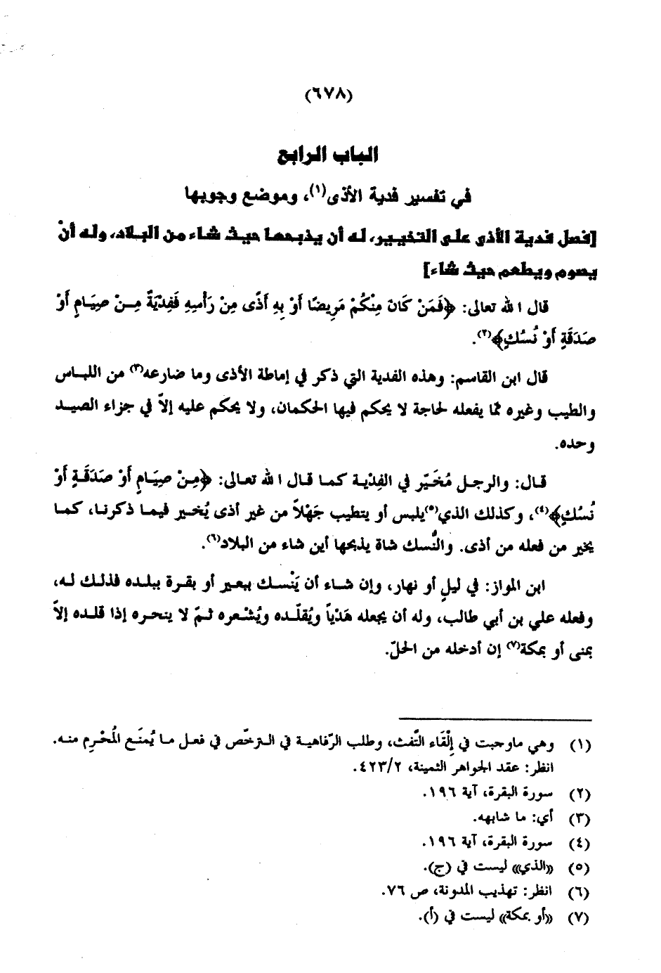 في تفسير فدية الأذى، وموضع وجوبها