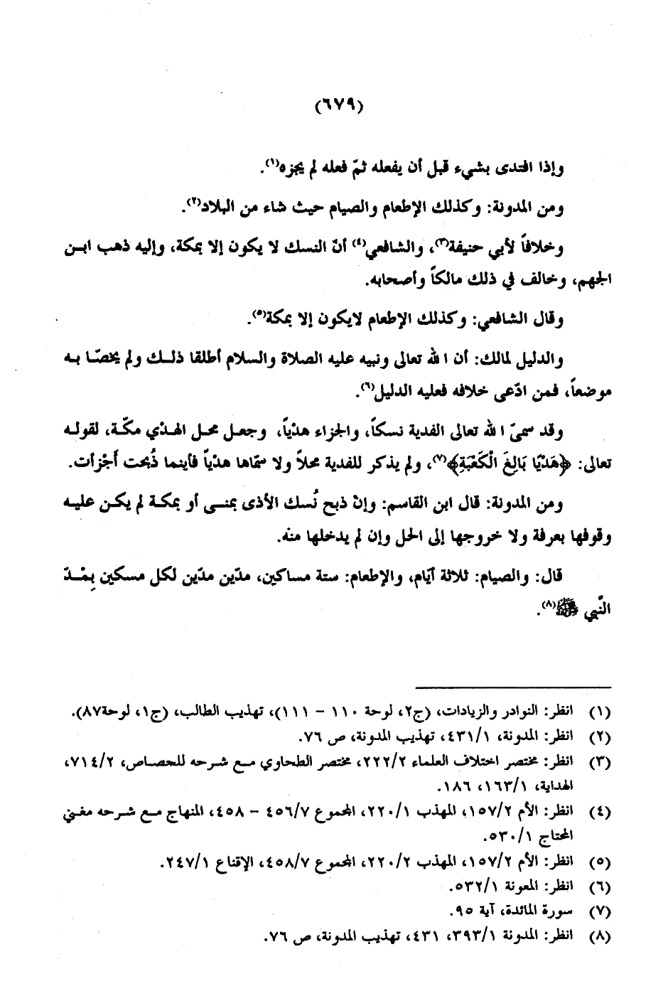وخلافاً لأبي حنيفة، والشافعي أن النسك لا يكون إلا بمكة، وإليه ذهب ابن الجهم، وخالف في ذلك مالكاً وأصحابه.