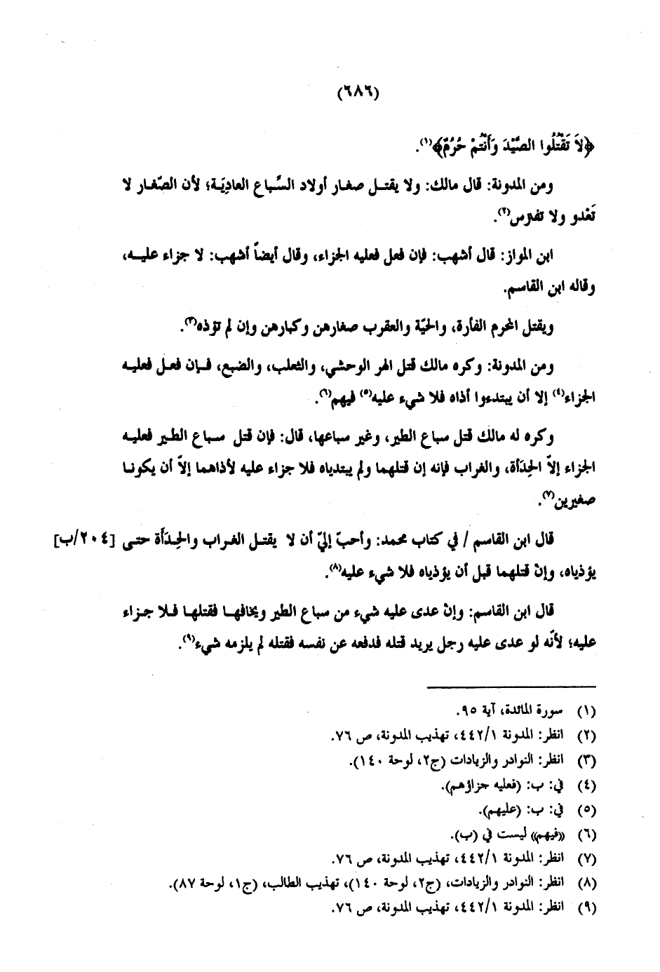 قال ابن القاسم / في كتاب محمد: وأحبٌ إليّ أن لا يقتل الغراب والحِدَأة حتى يؤذياه، وإنْ قتلهما قبل أن يؤذياه فلا شيء عليه.
